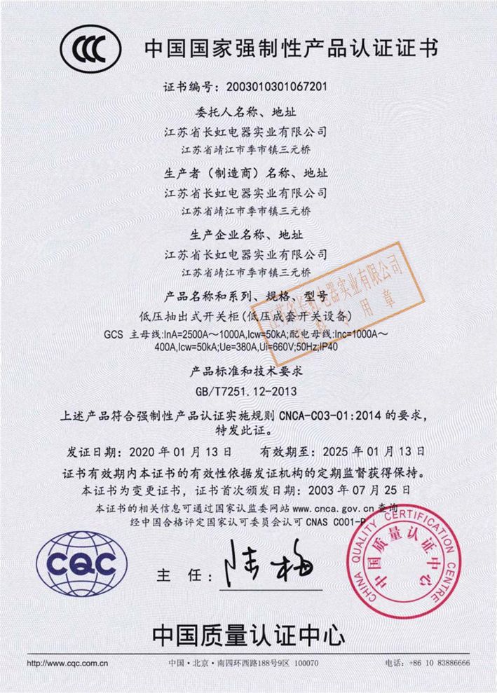 產(chǎn)品均已通過了由國家權(quán)威機(jī)構(gòu)進(jìn)行的型式試驗(yàn),并于2003年通過了CCC強(qiáng)制性產(chǎn)品認(rèn)證。